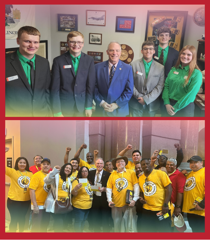 I’m shown in this photo with a group of 4-H kids (top), who were in town to celebrate the importance of 4-H programming. 4-H programs in Illinois play a vital role in developing leadership, responsibility, and practical life skills among young people through hands-on learning in areas like agriculture, STEM, and civic engagement. By connecting youth with mentors and real-world experiences, 4-H helps build confident, community-minded leaders who are prepared to contribute to Illinois’ future workforce and local communities.