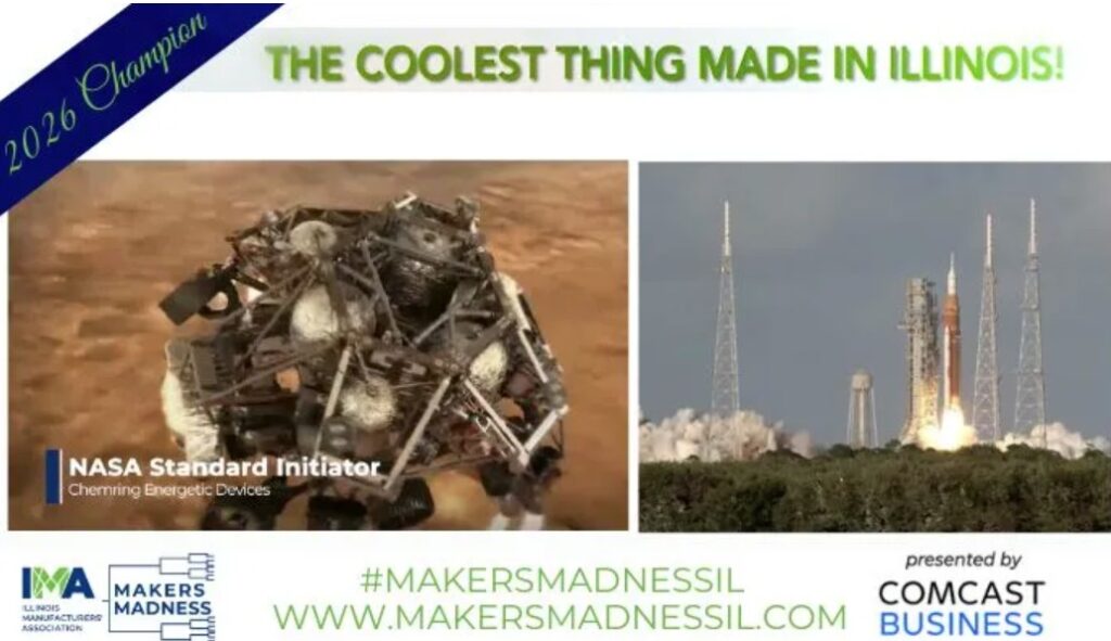 Chosen by voters from an initial field of more than 100 entries, the NASA Standard Initiator made by Chemring Energetic Devices in Downers Grove has been crowned the winner of the 2026 “Makers Madness” contest, earning the title of The Coolest Thing Made in Illinois.